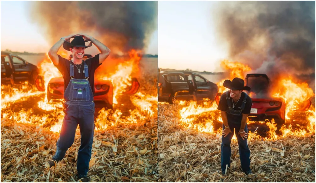 No registro, o youtuber aparece dirigindo o carro em alta velocidade no milharal seco. Uma minivan acompanha o trajeto, até que alguém começa a gritar “fogo”. Detwiler sai do carro e aparece a chama na roda traseira direita. Com o campo seco, o fogo se alastra e acaba atingindo também a minivan.