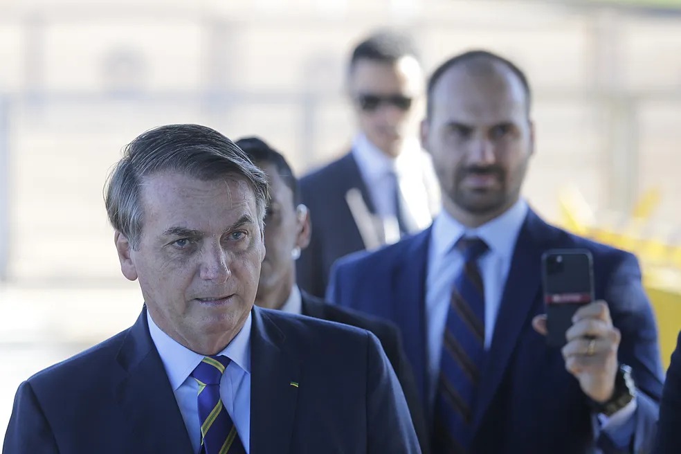 Mensagens citadas no relatório mostram que Eduardo xingou o pai após entrevista do ex-presidente sobre o conflito do filho com o governador de São Paulo, Tarcísio de Freitas (Republicanos).