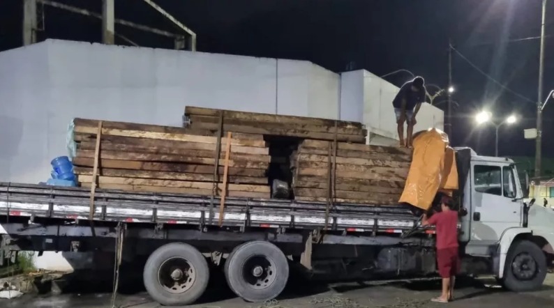 Um caminhão com 21 metros cúbicos de madeira ilegal foi apreendido, nessa quinta-feira (25), enquanto trafegava pelo bairro Nova Cidade, Zona Norte de Manaus. O motorista do veículo também foi detido.