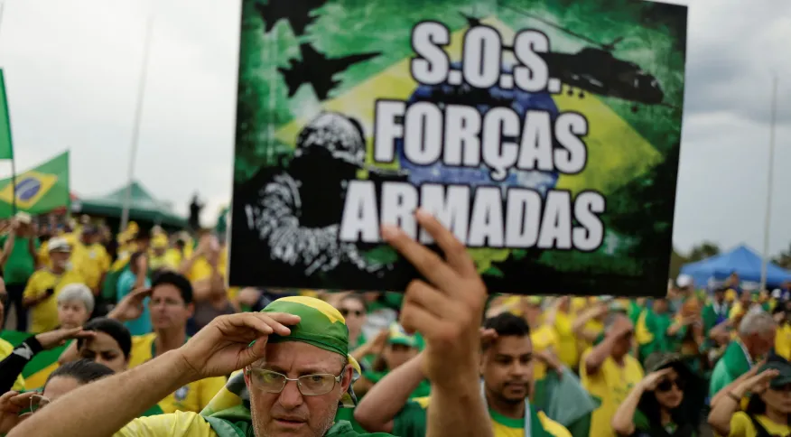 A manifestação é de apoiadores do presidente Jair Bolsonaro (PL) que não aceitam o resultado das urnas. O ministro Alexandre de Moraes, do STF, determinou, no mês passado, que as polícias Militar e Civil dos estados, a PM-DF, a Polícia Federal (PF) e a Polícia Rodoviária Federal (PRF) enviassem para o Supremo um levantamento com a identificação de caminhoneiros que participam de atos na frente de quartéis das Forças Armadas.