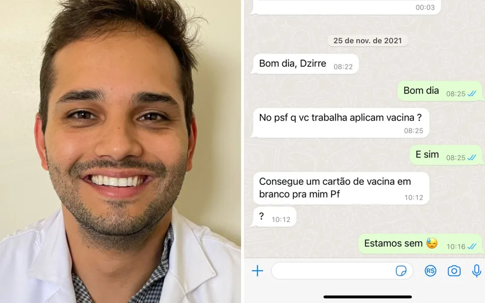 “Consegue um cartão de vacina em branco pra mim”, pediu o médico à enfermeira, por mensagem.