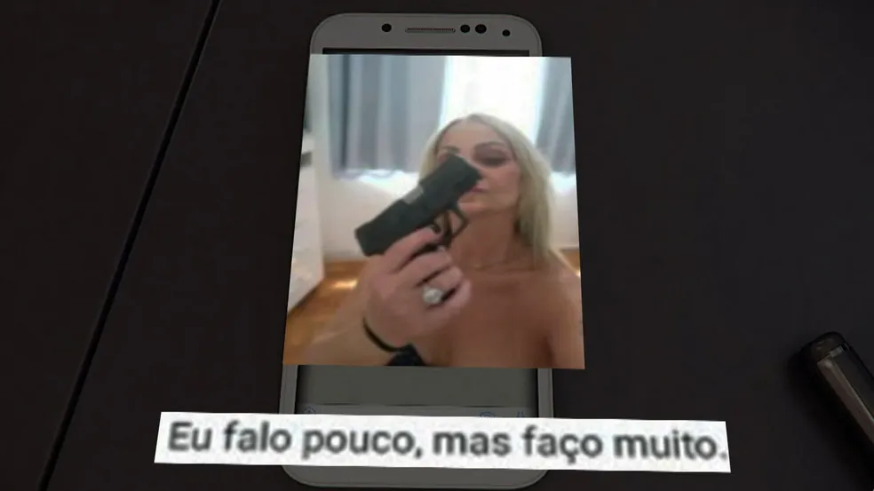 A família mostrou um print de uma conversa enviada a Lindaci em que Susane posa com uma arma e escreve: “Eu falo pouco, mas faço muito”.