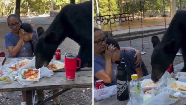 O registro foi feito pela produtora audiovisual Ángela Chapa e viralizou na web. Inclusive, as imagens mostram uma mulher cobrindo o rosto de uma criança enquanto o animal aproveita o banquete.“Antes de chegar lá, explicamos para Silvia e para Santiago que isso poderia acontecer e bolamos um plano do que fazer se isso realmente acontecesse. Seguimos o combinado ao pé da letra e não aconteceu nada além de o urso devorar todo nosso banquete”, escreveu Ángela em sua publicação no Instagram.