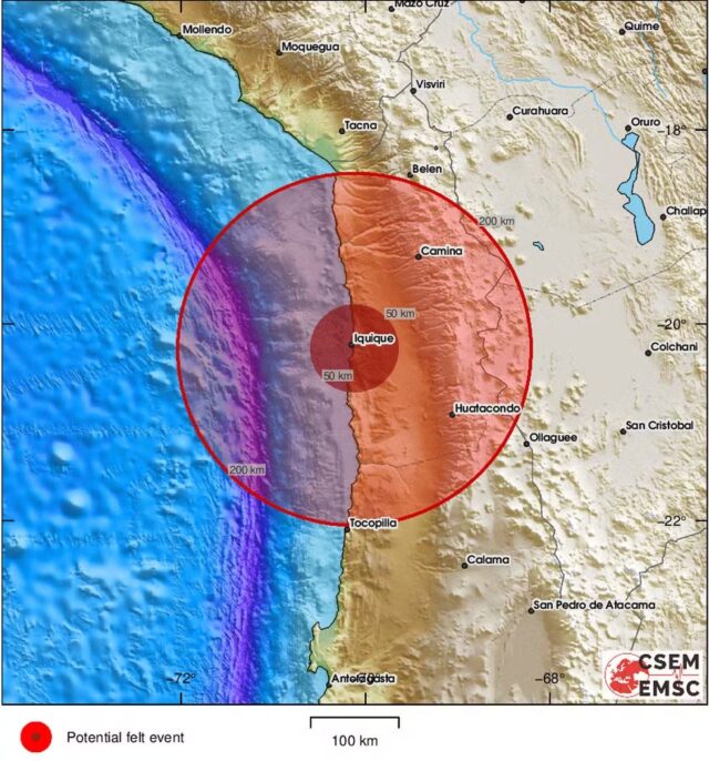 Um terremoto de magnitude 5,7 atingiu a região de Tarapacá, no Chile, na noite deste domingo (25), de acordo com o Centro Sismológico Euro-Mediterrânico (EMSC).
