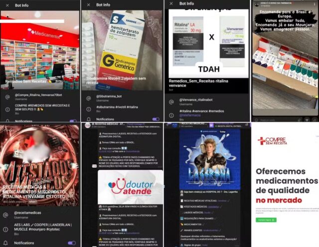Grupos nas redes sociais, em especial no Telegram, vendem medicamentos, receitas, atestados, laudos e até requisições de exames falsos com nomes reais de médicos — muitos deles nem sequer sabem que estão envolvidos.