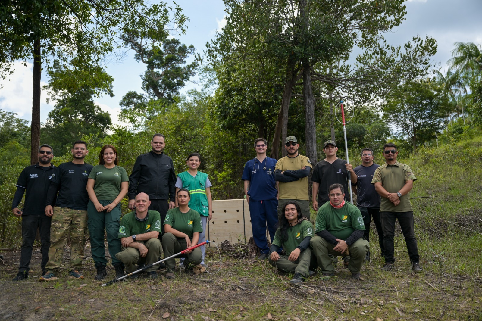 A ação foi coordenada pela Sepet-AM e envolveu médicos-veterinários, biólogos, pesquisadores e técnicos de imagem, que permaneceram na região de soltura de 13h de domingo até 6h40 da manhã de segunda-feira (10). A equipe precisou acampar na mata para garantir a liberação do animal em plenas condições de segurança, conforme orientações dos profissionais envolvidos.