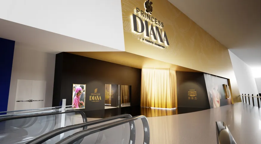 Ocupando quase mil metros quadrados do The Shops at Crystals, shopping de luxo na Las Vegas Strip, a exposição pretende transportar os visitantes para a vida da princesa por meio de suas roupas de grifes e itens históricos.