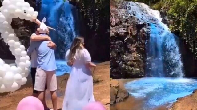 Na ocasião, as águas da cachoeira foram tingidas da cor azul para indicar que o bebê esperado pelo casal é do sexo masculino. O evento foi filmado e as imagens ganharam grande repercussão nas redes sociais devido à possibilidade de danos ao ecossistema.