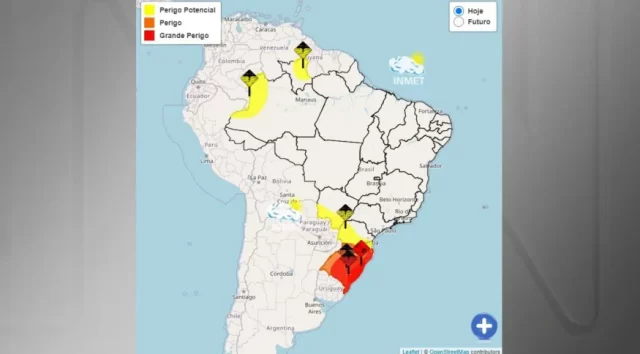 O Instituto Nacional de Meteorologia (Inmet) colocou, nesta quarta-feira (12), o Rio Grande do Sul e Santa Catarina em alerta vermelho, na situação de “grande perigo”, devido à formação de um ciclone extratropical.