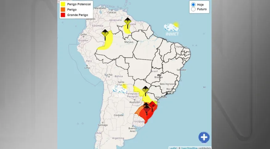 Situação de grande perigo no estado do Rio Grande do Sul devido ao ciclone / Reprodução/Inmet