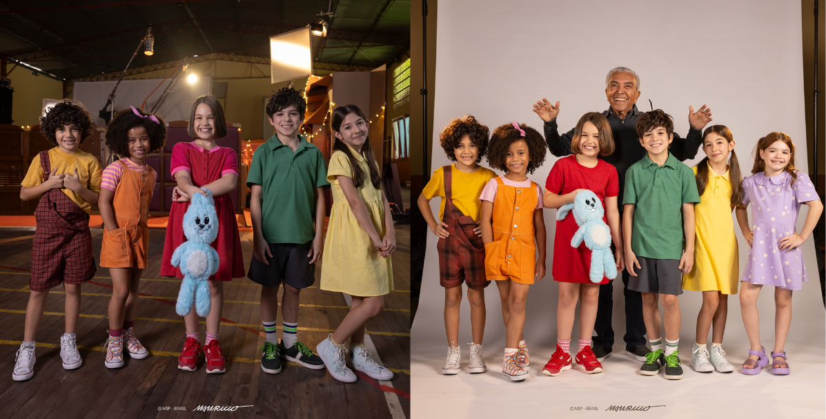 Com um elenco totalmente novo, Mônica, Magali, Cebolinha, Cascão e Milena serão representados por crianças. A produção já começou e a estreia está prevista para 2024. Nas imagens, o autor Mauricio de Sousa também aparece para anunciar a nova turma.