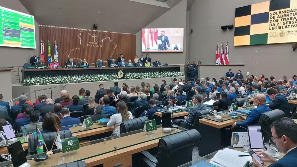 A Assembleia Legislativa do Amazonas (Aleam) iniciou o ano do legislativo de 2024 com uma solenidade nesta quinta-feira (1º). A sessão, realizada durante a manhã, conta com a presença do governador Wilson Lima, que leu a mensagem governamental aos deputados.