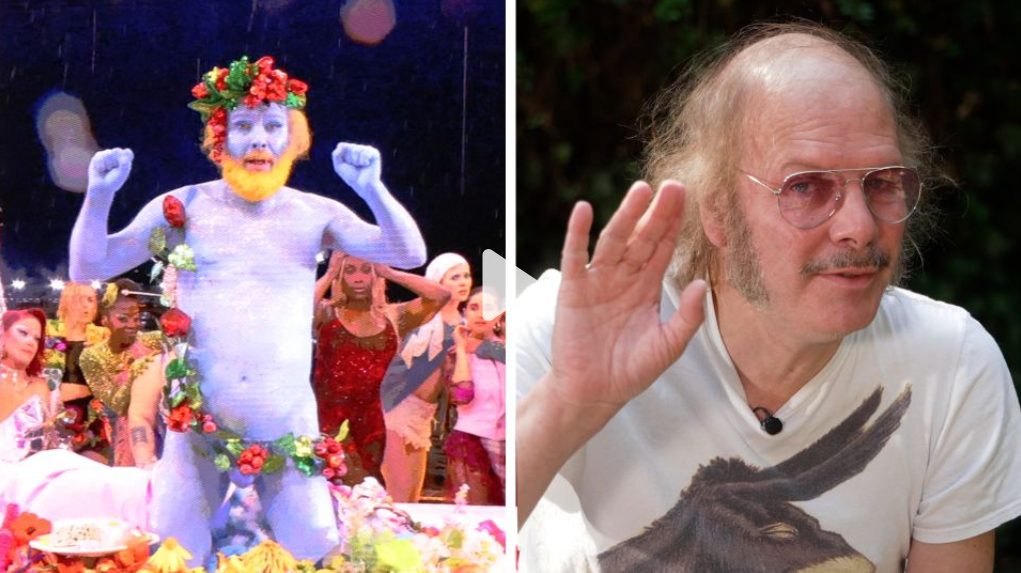 A performance e a cena em questão também incluíam Philippe Katerine, um artista francês que interpretou o deus grego do vinho, Dionísio, e rapidamente ficou conhecido como o “cara azul seminu”.