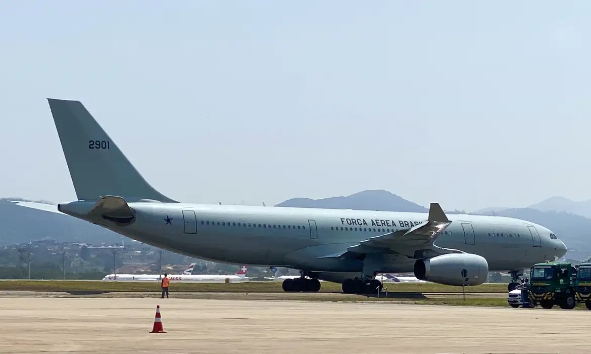 A aeronave KC-30, da Força Aérea Brasileira (FAB), pousou em Beirute, no Líbano, às 10h40 (horário de Brasília) desta segunda-feira (7).