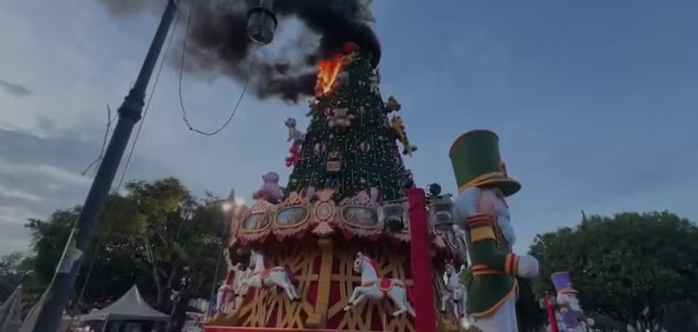 A árvore de Natal do Largo de São Sebastião, no Centro de Manaus, pegou fogo no fim da tarde desta quinta-feira (19). Não há registro de feridos. A estrutura tem mais de 23 metros de altura.