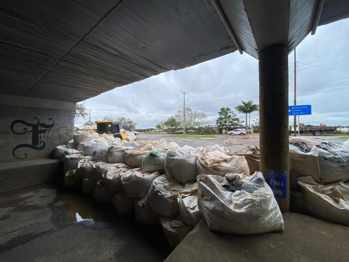 Os trabalhos foram iniciados na comporta 12, na região do 4º Distrito, que está sendo fechada com sacos de areia e cimento de uma tonelada cada, além do uso de argila compactada.