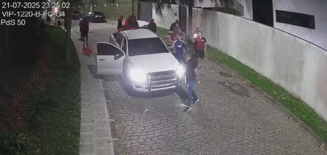 Logo depois, o delegado, Dr. Moisés Santana, da Delegacia de Repressão a Entorpecentes (DRE) e o policial são acuados pelo rapper e seus comparsas quando tentavam deixar o local. É nesse momento que Oruam aparece nas imagens com mais de 17 pessoas.
