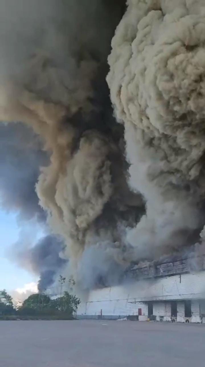 Imagens divulgadas nas redes sociais mostram uma densa nuvem de fumaça sobre a fábrica. A fumaça pôde ser vista de vários pontos da cidade.