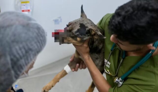 Após ser vítima de maus-tratos, o animal foi levado pelo tutor até a unidade hospitalar. No local, recebeu atendimento de médicos-veterinários, passou por avaliação clínica e está em tratamento intensivo para a recuperação do ferimento.