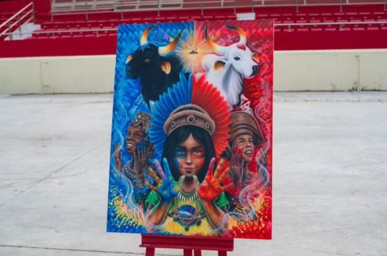 A obra “Parintins, a Cor da Minha Raça”, do artista Pedro Paulo Tetsuro, foi escolhida como a tela oficial da 59ª edição do Festival de Parintins. A seleção ocorreu neste sábado (11), na arena do Bumbódromo, em Parintins, durante concurso que reuniu 28 obras e 35 artistas.